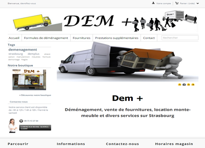 Site sous Prestashop pour vente de fournitures de déménagement et présentation des services et formules proposés